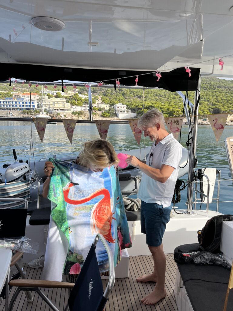Wat is er nou leuker dan een verjaardagsfeestje mogen schipperen? Ik heb het antwoord gevonden: schipperen in Griekenland, op een Catamaran, met super gezellige mensen én een overkill aan Flamingo’s. Waar je ook keek, er was geen ontkomen aan; Flamingo’s overal. We hebben een top week gehad, heerlijk gegeten, gedronken en gezongen. Dank je wel Karin dat je mij hebt meegevraagd om jullie onderkomen voor de week te mogen varen. Ik kijk er met heel veel plezier op terug en zing nog graag ons ‘Flamingo-lied’. Voor wie het lied wil luisteren;