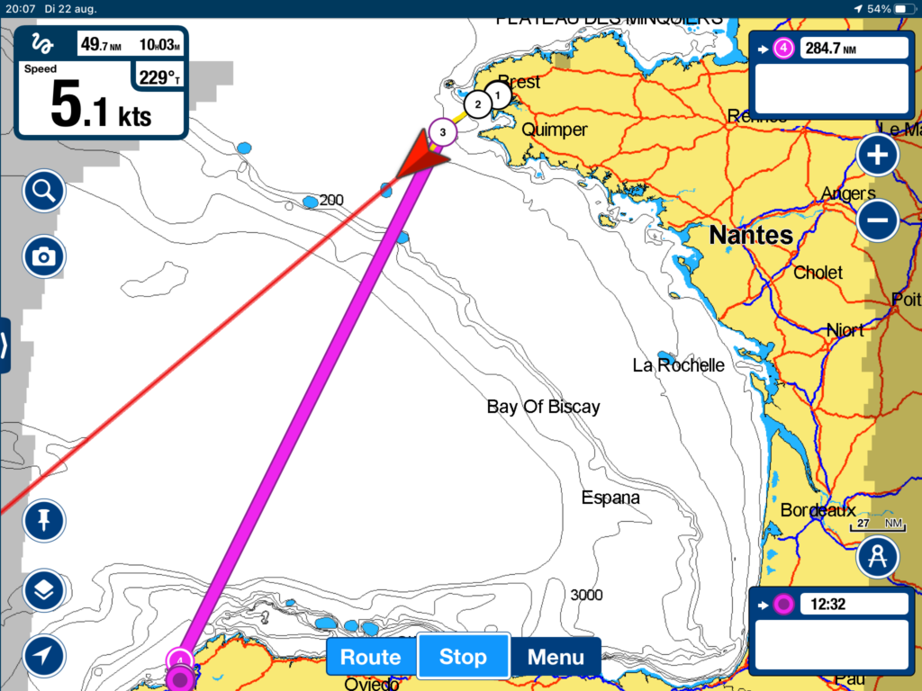 In augustus ben ik van Brest overgestoken naar A Coruna. In de voorbereiding op deze tocht gingen mijn gedachten regelmatig uit naar de berichten die circuleren over Orca’s die zeiljachten als een speeltje lijken te zien. Ik zag afgebroken roerbladen en andere schades voorbijkomen. Ook zijn er verhalen over pittige omstandigheden door wind en golven in deze hoek. Het kan er best spoken en dan helpt het ook niet als de oceaan vanuit een behoorlijke diepte het water omhoog stuwt naar de rand waarop wij willen gaan varen. Desondanks besloot ik de oversteek toch te gaan maken want ik wilde wel eens meemaken hoe het is om meerdere dagen en nachten aaneengesloten op zee te zijn.